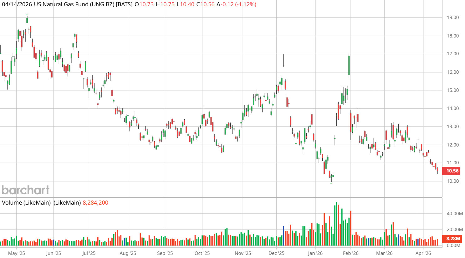 Natural gas futures can be volatile and risky for the uninitiated – and for that matter, even the initiated – and Rowland warns that even tracking products like the US Natural Gas Fund (UNG) offer barriers to entry for market rookies: