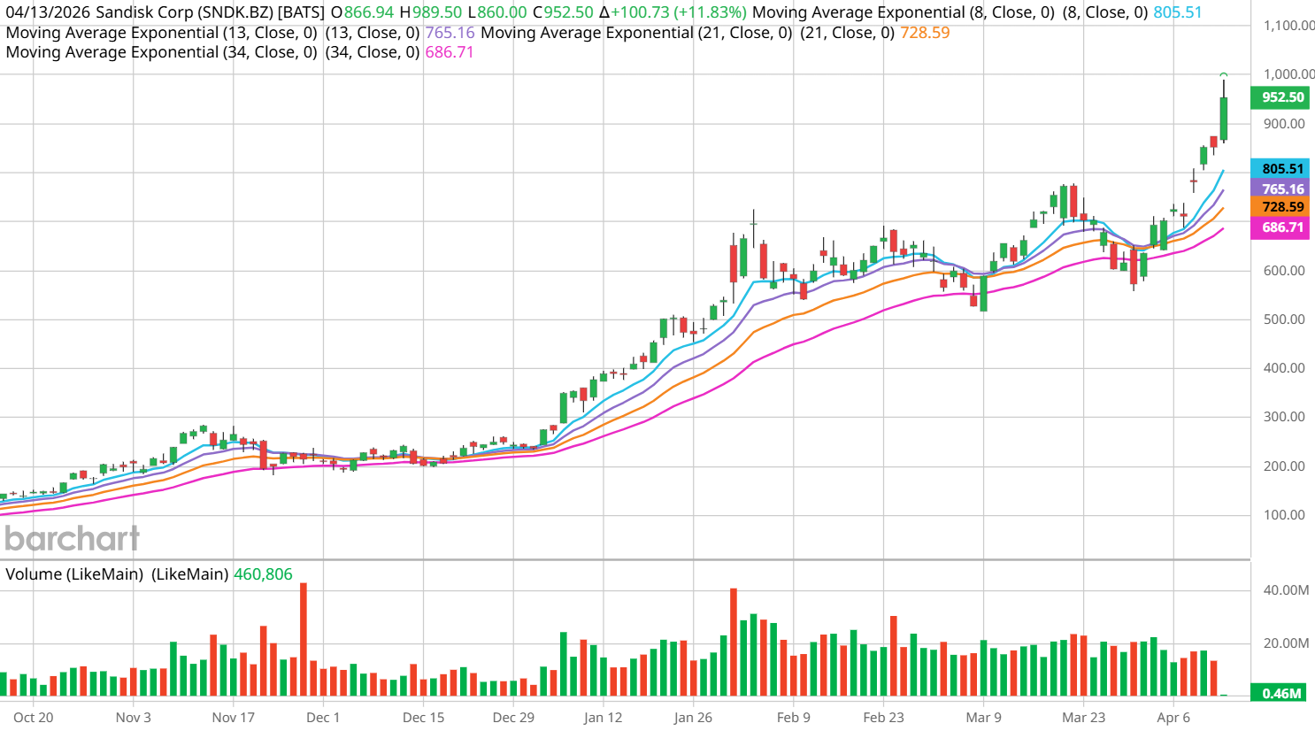 He was right; it was a $700 company when he said that. And then Nasdaq announced that SNDK would be joining its benchmark Nasdaq-100 Index, and suddenly it was a $900 stock just days later.