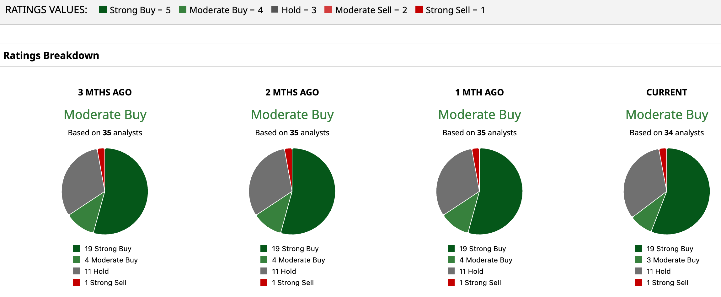 Overall, Costco has an overall rating of “Moderate Buy.” Of the 34 analysts covering the stock, 19 suggest a “Strong Buy,” three advise a “Moderate Buy,” 11 recommend a “Hold,” and one is skeptical, having a “Strong Sell” rating.