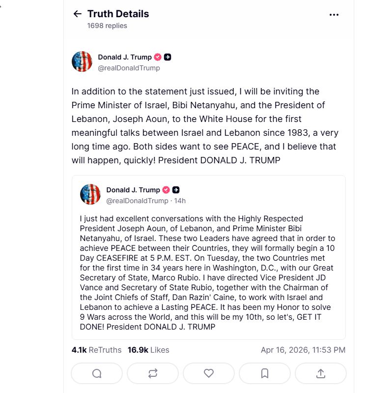 The move came within hours of US President Donald Trump announcing a 10-day ceasefire between Israel and Lebanon — a deal that had been quietly taking shape following direct talks between the two countries on US soil the day before.