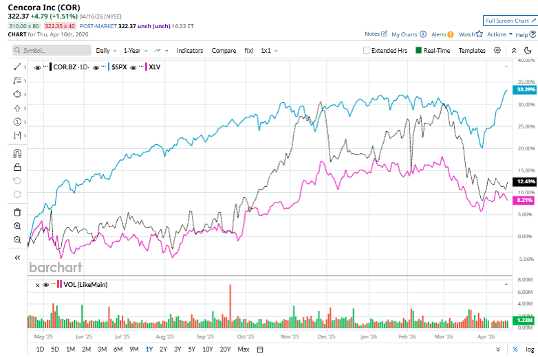 Shares of Cencora have surged 13.3% over the past 52 weeks, underperforming the S&P 500 Index’s ($SPX) 33.5% rise but outpacing the State Street Health Care Select Sector SPDR ETF’s (XLV) 7.6% return during the same time frame.