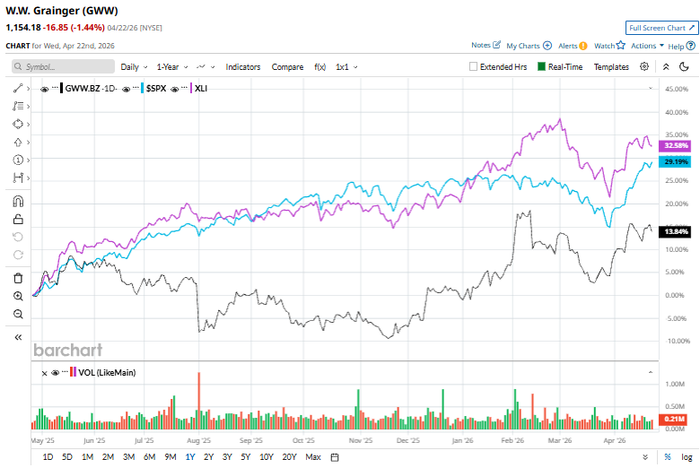 GWW shares rose 15.6% over the past year, underperforming the S&P 500 Index’s ($SPX) 35% gains and the State Street Industrial Select Sector SPDR Fund’s (XLI) 37.2% gains over the same time frame.
