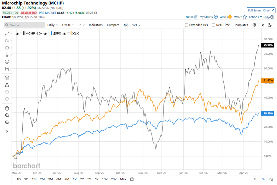Shares of Microchip Technology have climbed 104.7% over the past 52 weeks, outpacing the broader S&P 500 Index's ($SPX) nearly 35% gain and the State Street Technology Select Sector SPDR ETF's (XLK64.3% increase over the same period.