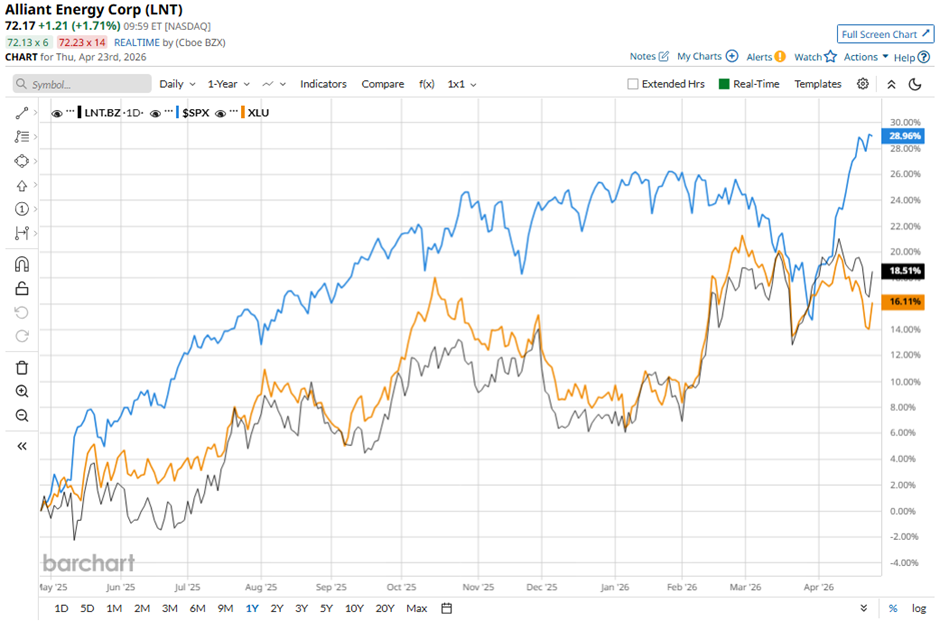 LNT stock has risen 17.5% over the past 52 weeks, underperforming both the S&P 500 Index's ($SPX32.4% gain. However, the stock has outpaced the State Street Utilities Select Sector SPDR ETF's (XLU16.2% increase over the same period.
