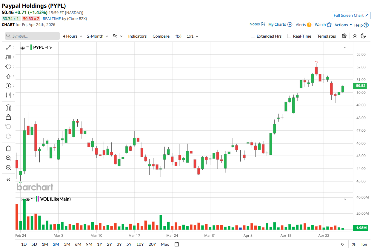 On April 24, Truist raised its target price on PYPL stock from $39 to $45 — still well below the current share price — and also maintained a “Sell” rating. In contrast, Cantor Fitzgerald recently raised its price target for PayPal from $42 to $54. The mean target price is $51.26, which is quite close to where the stock currently trades.