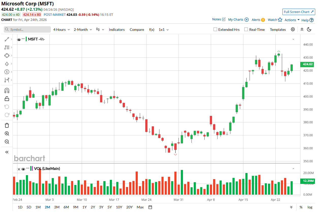On April 16, TD Cowen analyst Derrick Wood reaffirmed a “Buy” rating on MSFT stock with a price target of $540. Jefferies analyst Brent Thill also recently maintained a “Buy” rating on Microsoft while keeping a price target of $675.