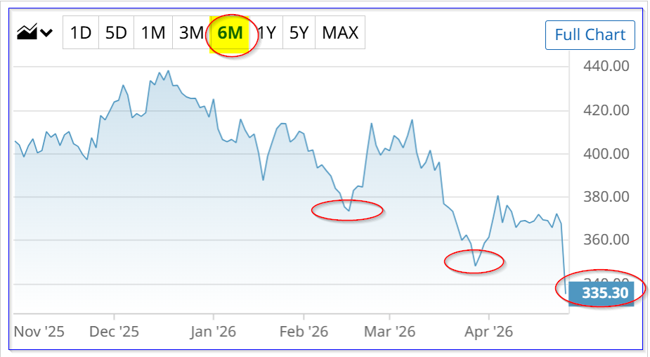 $335.30 x 1.2875 = $431.70 per share price target (PT).