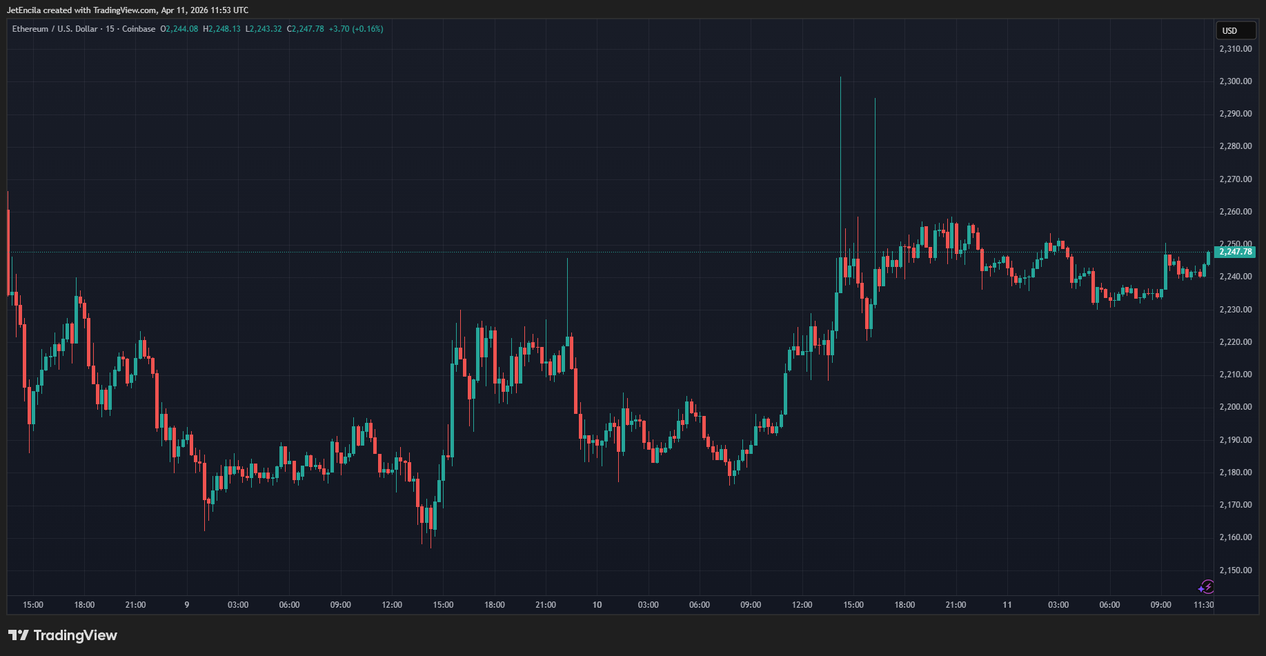 ETH traded in a narrow band around $2,105 to $2,200 through much of the quarter — far below the highs the asset hit in prior cycles. The gap between record-breaking network usage and a stagnant price has puzzled market watchers.