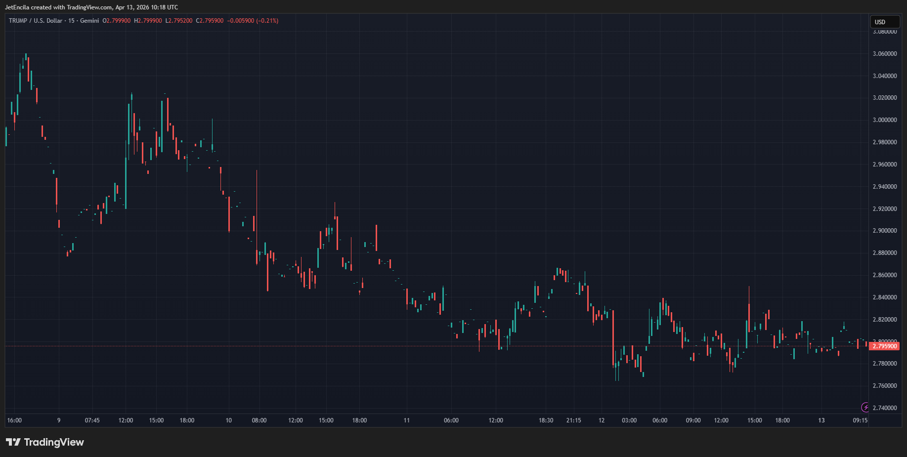 The current cycle shows a similar shape, though at lower prices. When the April luncheon was announced in March, TRUMP jumped to $4.30. Since then, reports indicate the price has dropped more than 30%, trading around $2.81 as of Monday, according to data from CoinMarketCap.