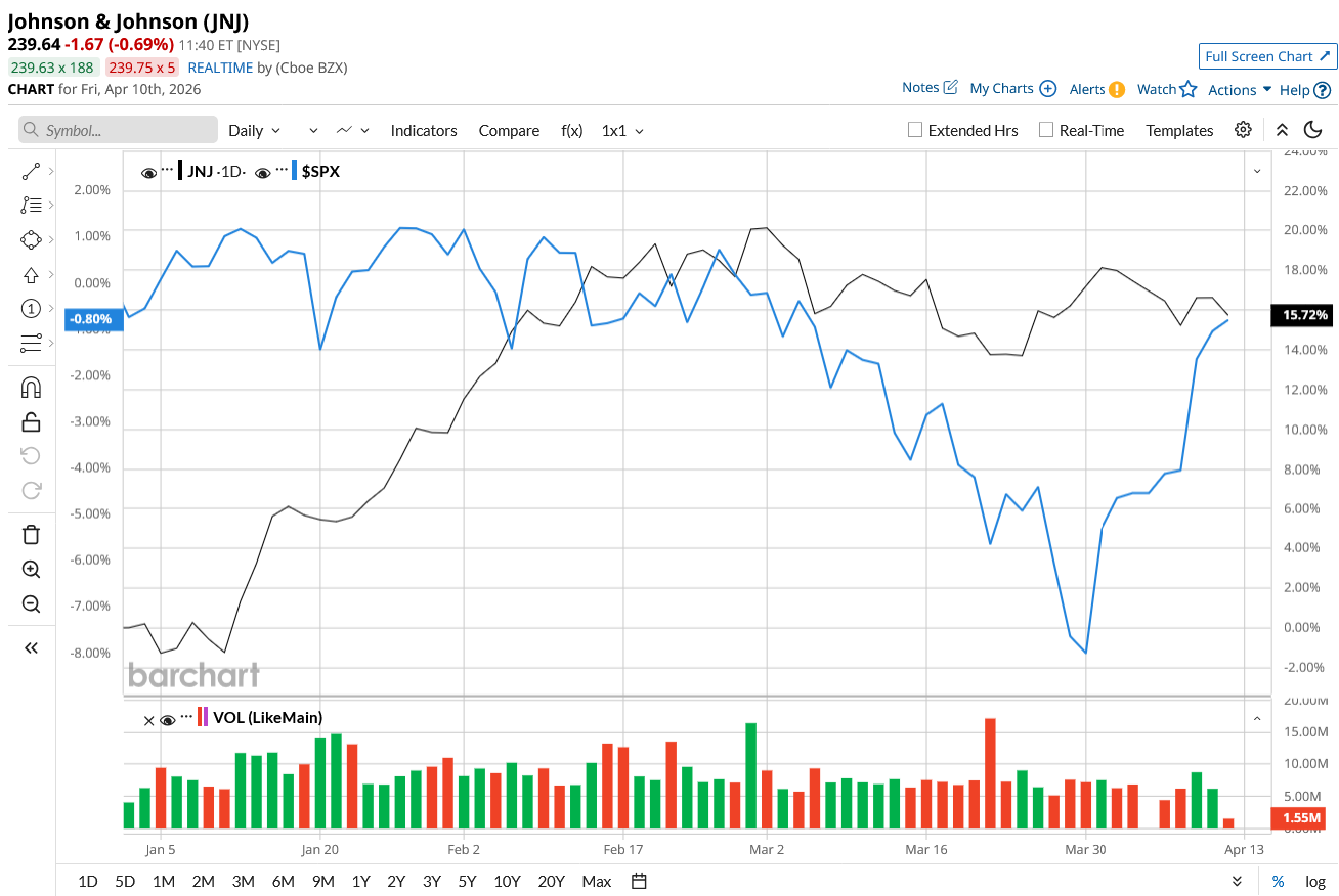 JNJ stock is up 15% year-to-date (YTD), outperforming the S&P 500 Index ($SPX) dip of 0.11%. Should you grab this growth and income stock now?