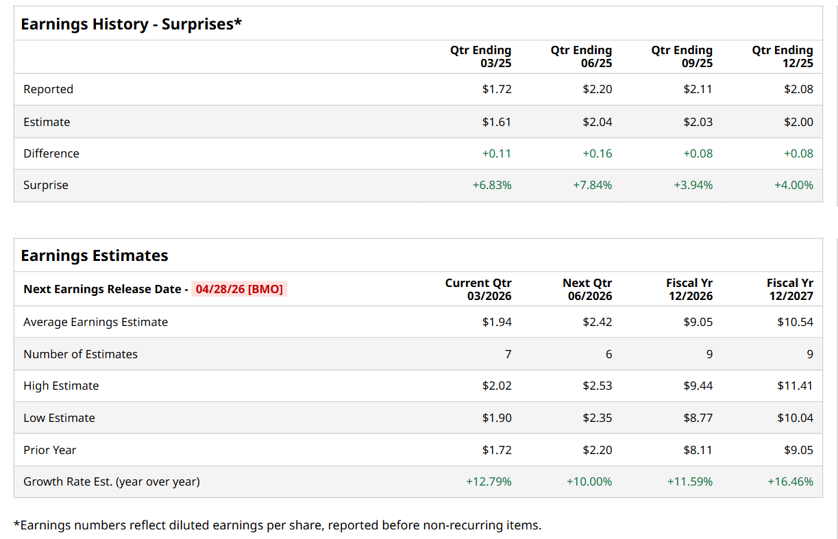McLean, Virginia-based Hilton Worldwide Holdings Inc. (HLT) is a hospitality company that manages, franchises, and leases hotels and resorts. Valued at a market cap of $74 billion, the company is scheduled to report fiscal Q1 2026 earnings before the market opens on Tuesday, Apr. 28.