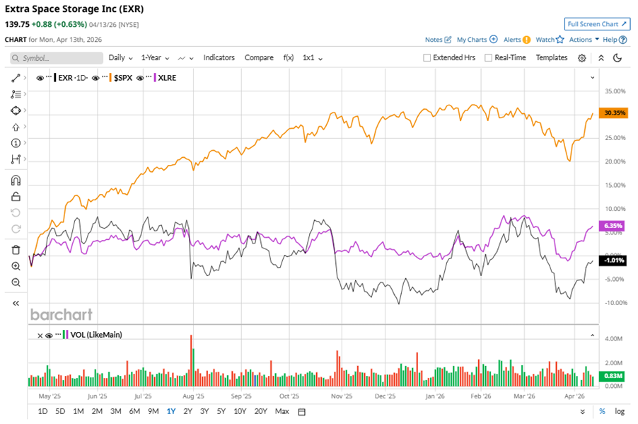 EXR stock has underperformed the S&P 500 Index’s ($SPX) 28.4% gains over the past 52 weeks, with shares up 4.4% during this period. Similarly, it underperformed the State Street Real Estate Select Sector SPDR ETF’s (XLRE10.5% gains over the same time frame.