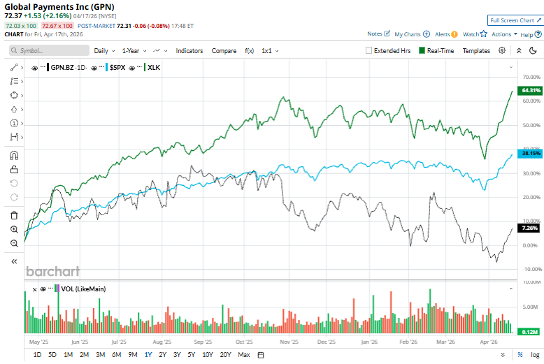 GPN stock has surged 4.2% over the past 52 weeks, underperforming the S&P 500 Index’s ($SPX34.9% rise and the State Street Technology Select Sector SPDR ETF’s (XLK60.1% return during the same time frame.