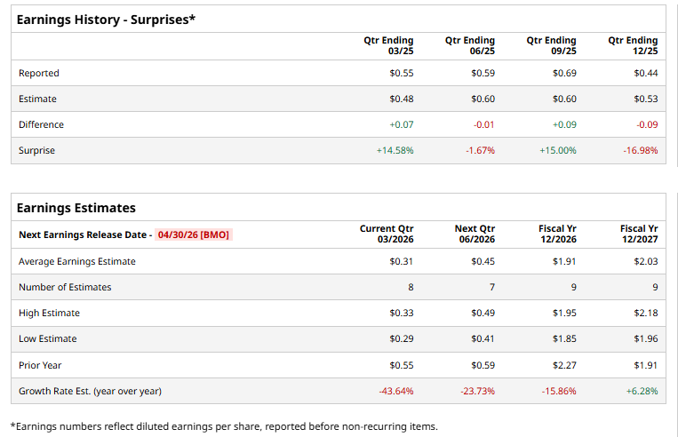 The company is expected to unveil its fiscal Q1 2026 results before the market opens on Thursday, Apr. 30. Ahead of the event, analysts forecast BAX to post an adjusted EPS of $0.31, a decline of 43.6% from $0.55 in the same quarter last year. It has surpassed Wall Street's bottom-line projections in two of the past four quarters while missing on two other occasions.