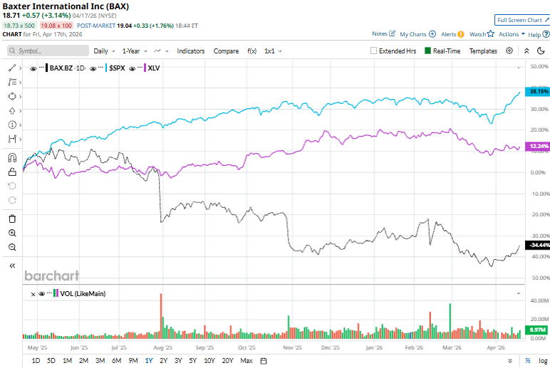 BAX stock has decreased 35.2% over the past 52 weeks, underperforming the broader S&P 500 Index's ($SPX34.9% rise and the State Street Health Care Select Sector SPDR ETF's (XLV9.8% gain over the same period.
