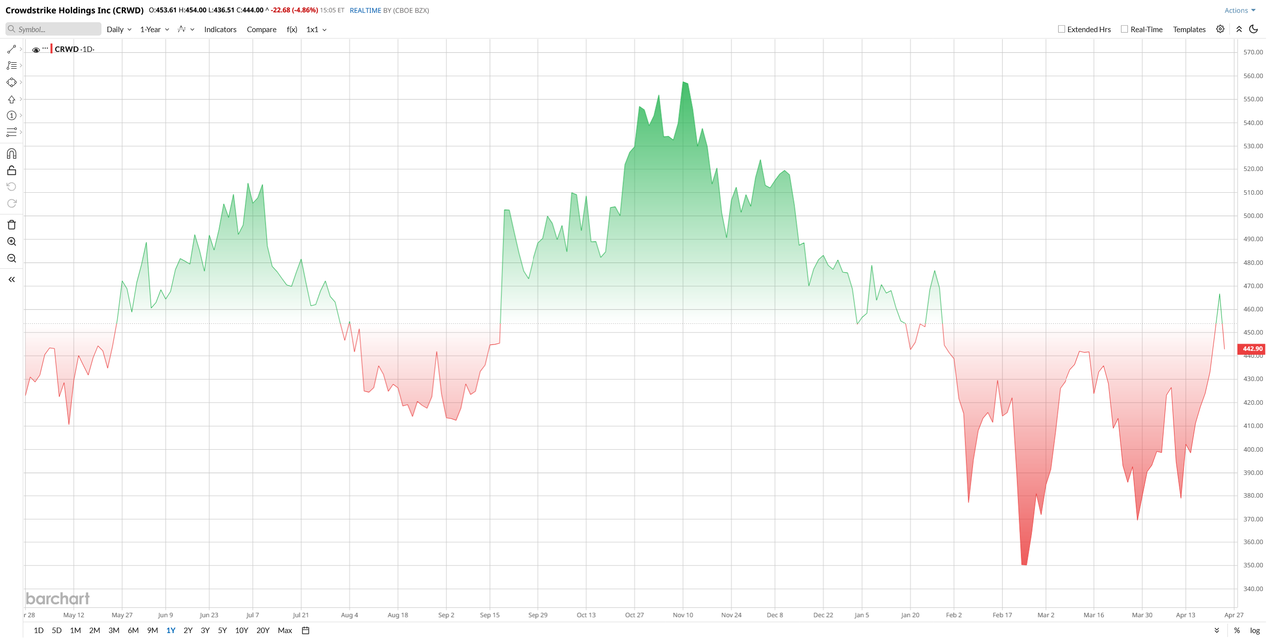 CRWD stock has had a messy 2026, even with a recent bounce. Shares have gained more than 15% over the past year, yet are trading down 5% year-to-date (YTD). The choppy movement reflects strong growth and record FY26 ARR, but valuation worries, slower six-month momentum, and post-outage caution have kept gains muted this year.