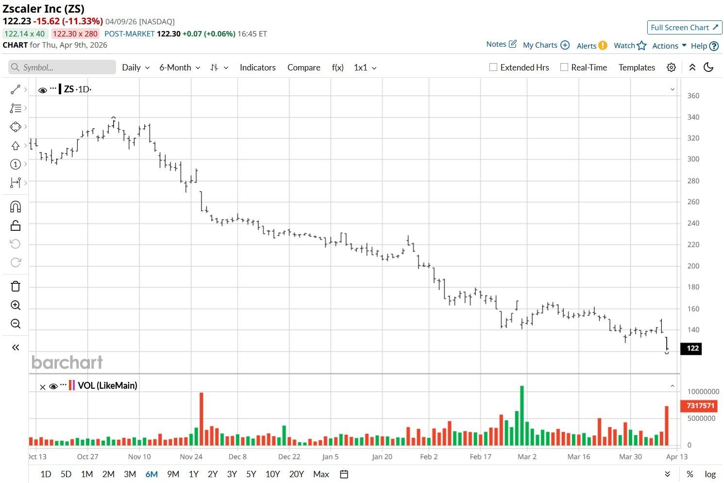 Zscaler (ZS) shares ended deep in the red on April 9 after senior BTIG analyst Gray Powell issued a bearish note on the San Jose-headquartered cloud security company.