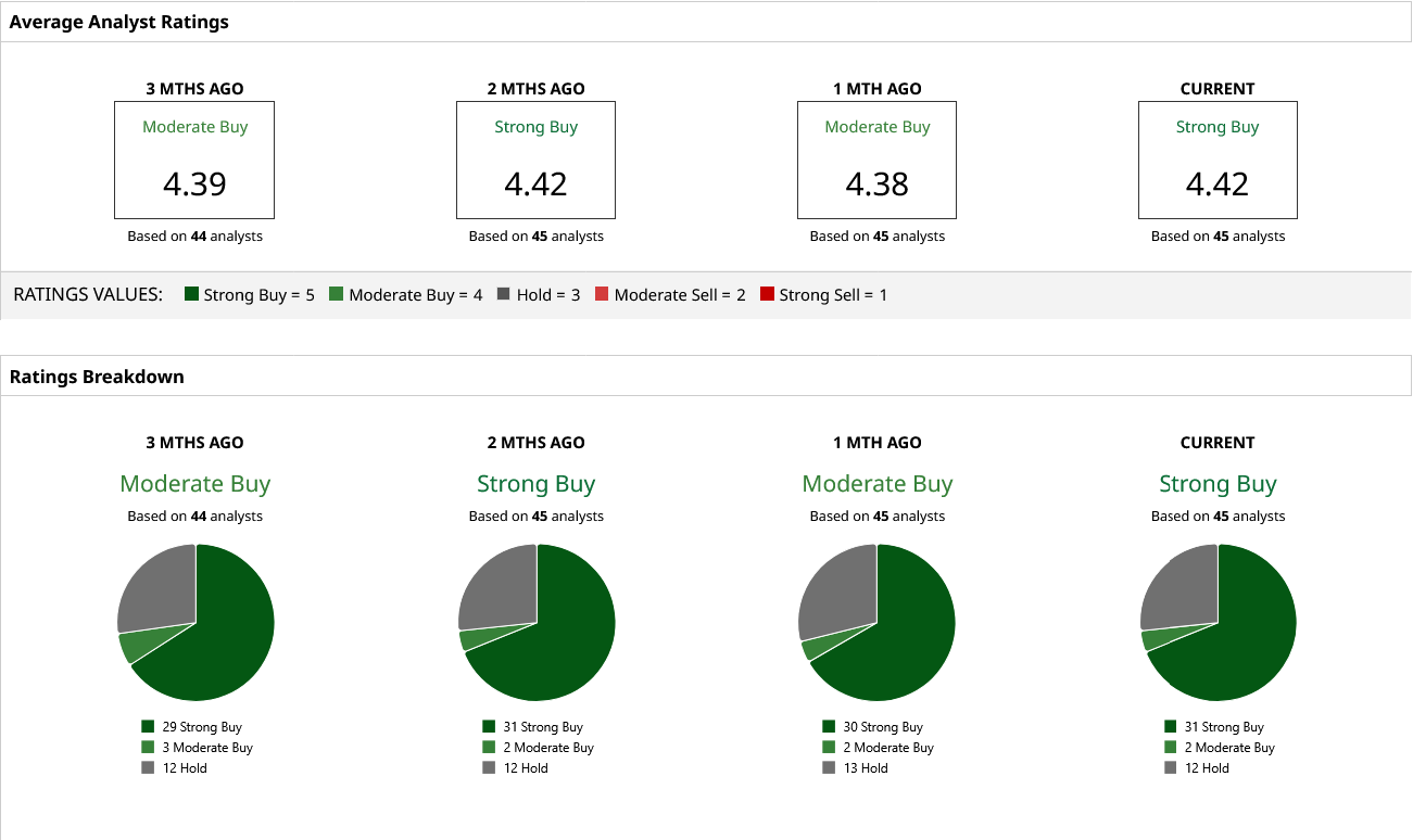 Analysts remain upbeat on AMD stock. According to Barchart, the mean price target of $287.39 says the consensus target points to about 22% upside, and the consensus from 45 analysts is “Strong Buy.” The competition is intense, but AMD’s AI and high-performance computing franchise is looking stronger by the quarter.