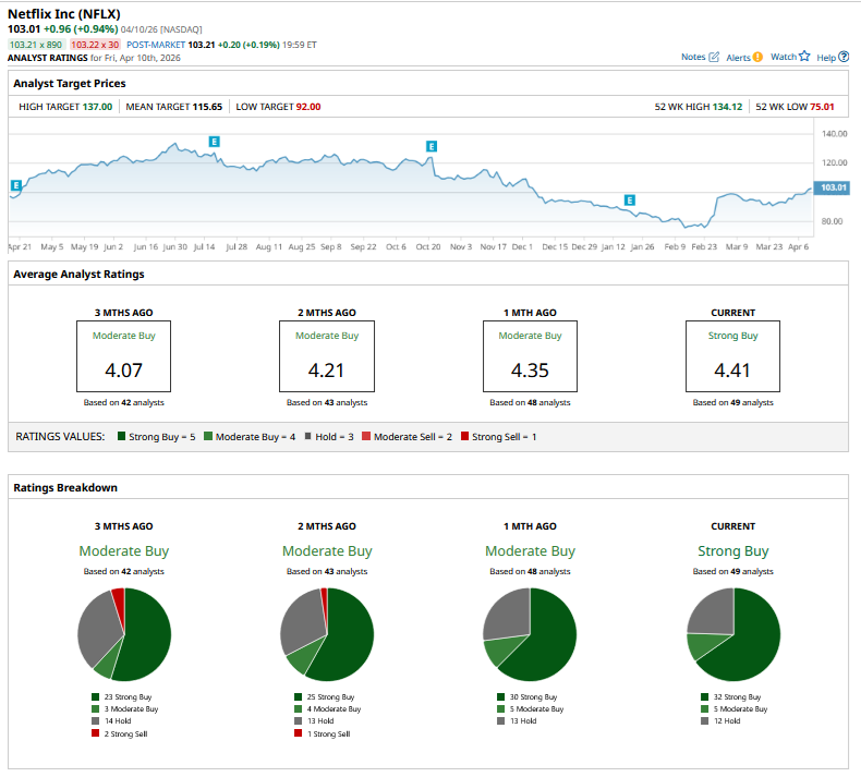 Sell-side analysts have been getting incrementally bullish on Netflix. Earlier this month, Goldman Sachs upgraded NFLX stock from “Neutral” to “Buy” while raising its target price from $100 to $120. Wedbush, HSBC, Morgan Stanley, and Rosenblatt have also raised their price targets heading into the Q1 report.