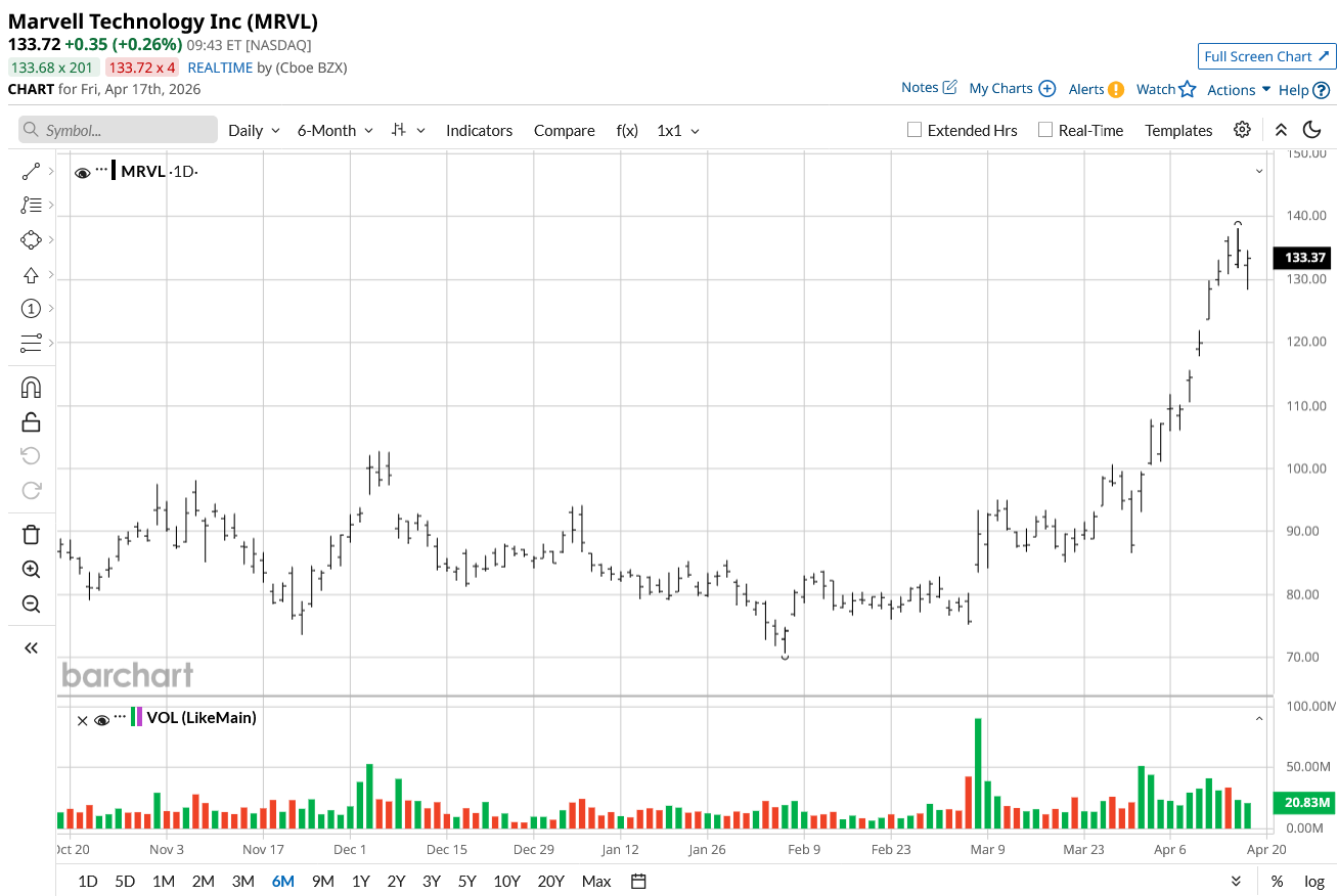 Marvell’s stock has been on a roll this year, surging about 60% year-to-date (YTD) and is currently trading near its 52-week high of $138.19. This explosive growth was recently supercharged by a landmark partnership with Nvidia (NVDA), which included a $2 billion investment via preferred stock to integrate Marvell’s custom networking solutions into Nvidia's "AI factory" ecosystems.
