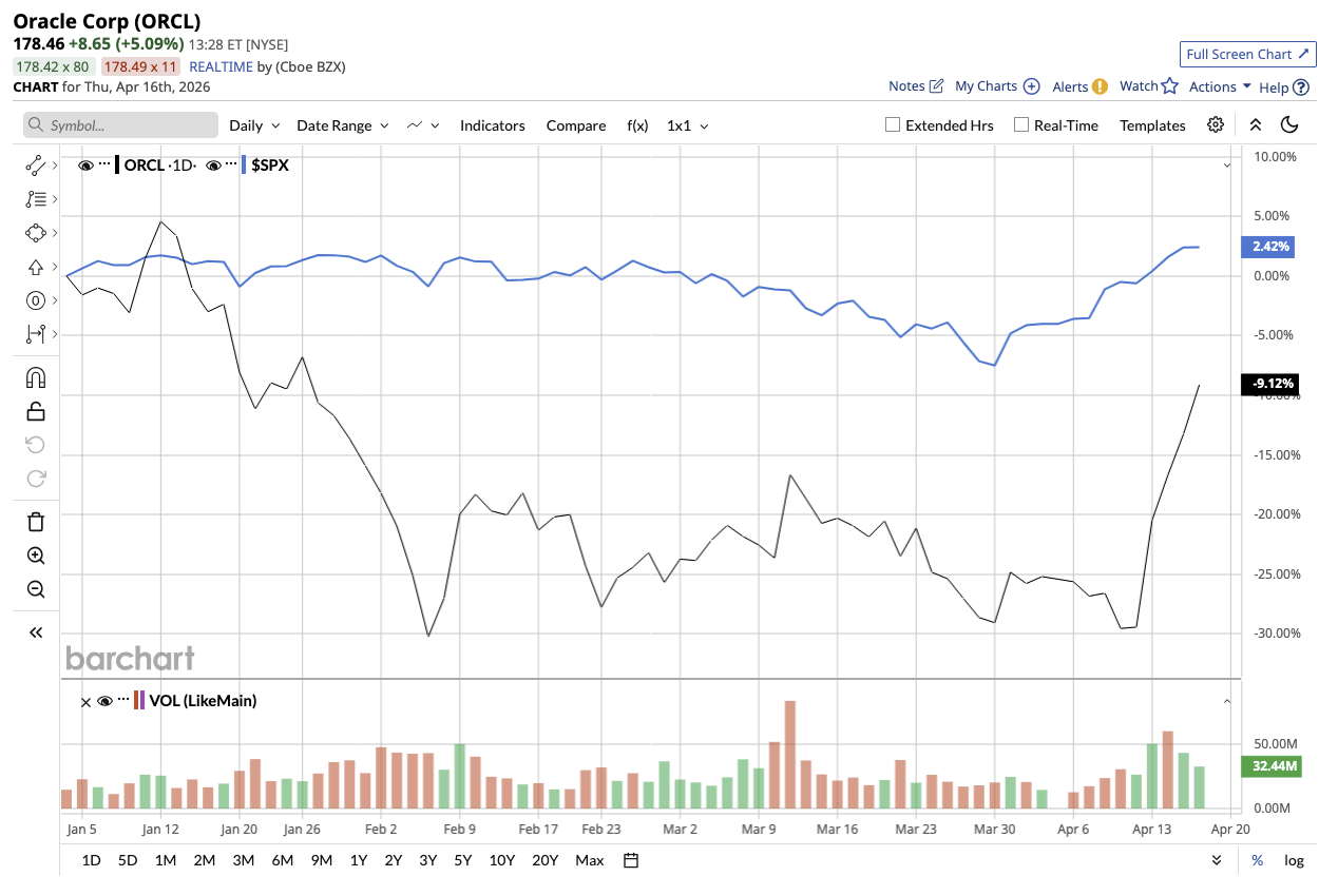 Oracle (ORCL) might be one of those rare opportunities that offers a compelling, risk-adjusted way to play the AI trend. ORCL stock is down 11% year-to-date (YTD) and down 49% from its 52-week high of $345.72, compared to the S&P 500 Index's ($SPX) gain of 4% YTD.
