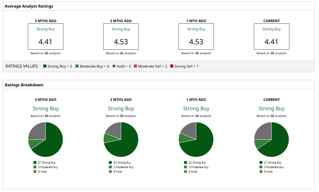 Based on 32 analysts with coverage, LRCX stock has a consensus “Strong Buy” rating. While 21 analysts have a “Strong Buy” rating for LRCX stock, three analysts have a “Moderate Buy” while eight analysts have a “Hold” rating.