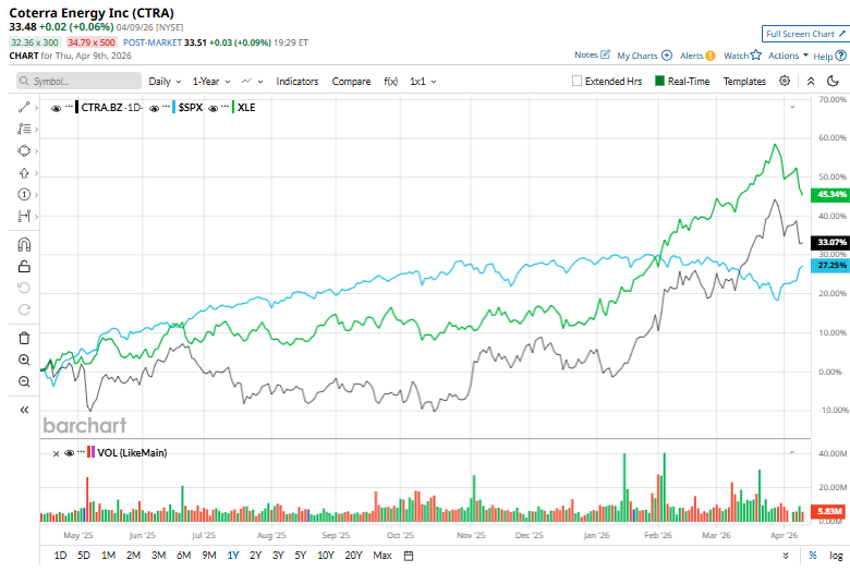 Over the past year, CTRA stock has surged 29.4%, outperforming the S&P 500 Index’s ($SPX) 25.1% gains, but has lagged behind the State Street Energy Select Sector SPDR Fund’s (XLE) 39.2% returns over the same time frame.