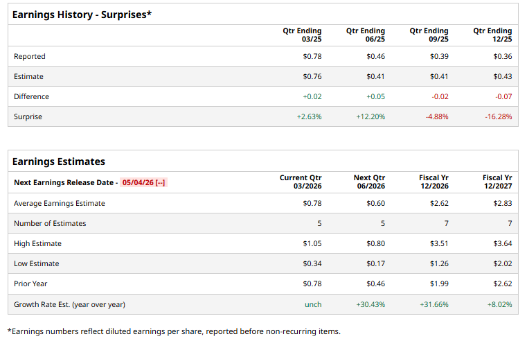 Valued at a market cap of $25.4 billion, Coterra Energy Inc. (CTRA) is a Houston-based independent oil and gas company. It operates across the Permian Basin, Marcellus Shale, and Anadarko Basin, producing oil, natural gas, and NGLs. The company is expected to announce its FY2026 Q1 earnings shortly.