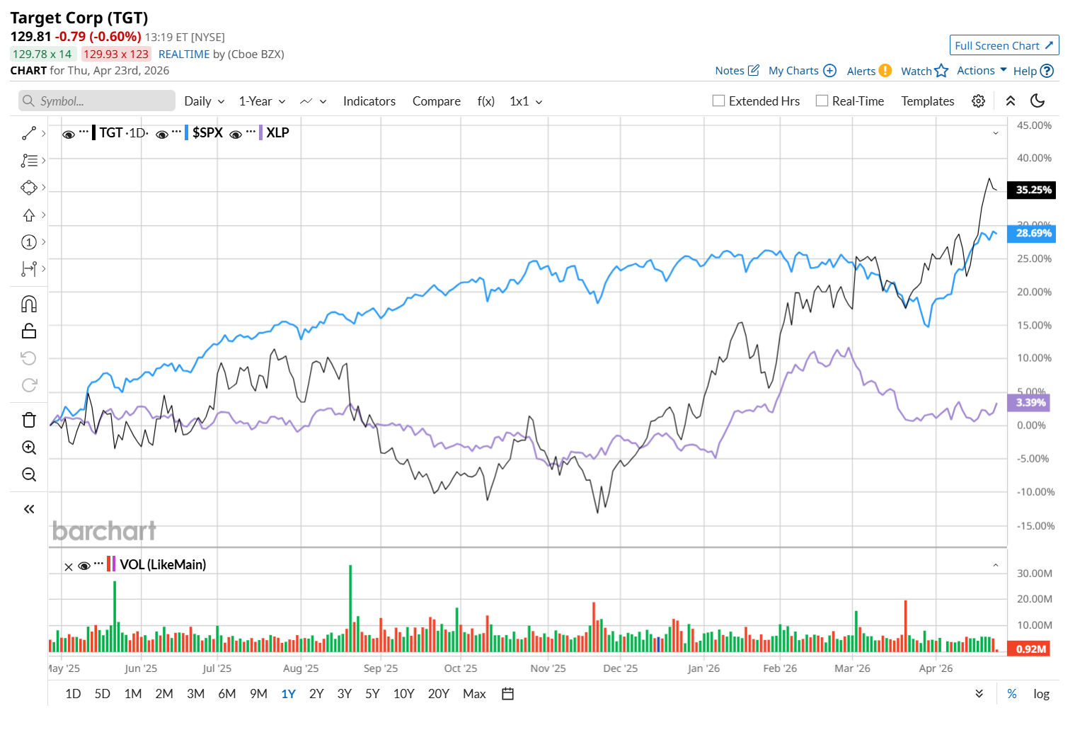 TGT has rallied 41.8% over the past 52 weeks, considerably outperforming both the S&P 500 Index's ($SPX) 35% return and the State Street Consumer Staples Select Sector SPDR ETF’s (XLP) 1.9% uptick over the same time period.