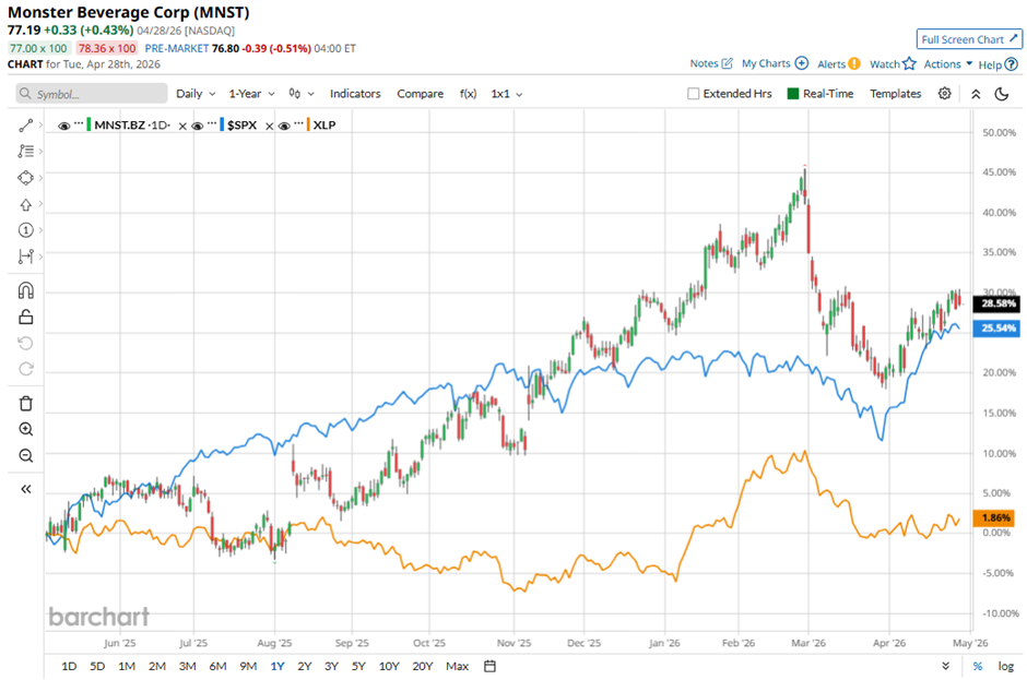 Shares of the Corona, California-based company have outperformed the broader market over the past 52 weeks. MNST stock has increased nearly 32% over this time frame, while the broader S&P 500 Index ($SPX) has gained 29.1%. However, shares of the company are up marginally on a YTD basis, lagging behind SPX’s 4.3% rise.