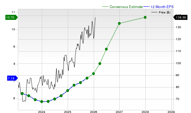 The company is expected to earn $10.35 per share for the full year, which represents a change of +39.5% from the prior-year number.