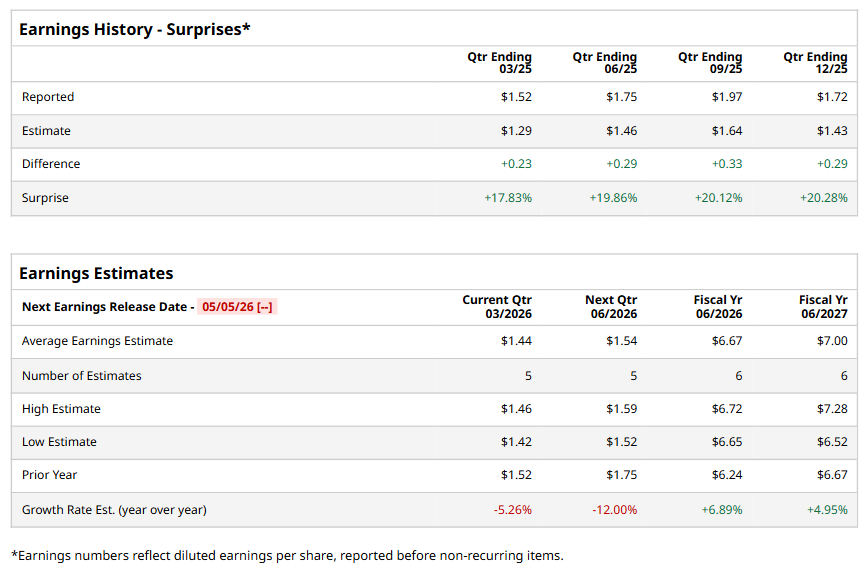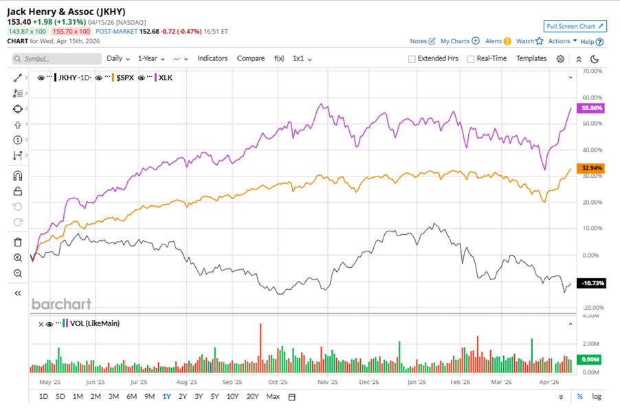 Monett, Missouri-based Jack Henry & Associates, Inc. (JKHY) is a financial technology company that connects people and financial institutions through technology solutions and payment processing services that reduce the barriers to financial health. With a market cap of $11.1 billion, the company also performs data conversion and software installation and customization for the implementation of its systems along with continuing customer maintenance. The leading provider of computer systems is expected to announce its fiscal third-quarter earnings for 2026 in the near term.