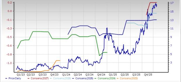 The Zacks Consensus Estimate for REAL’s current financial-year sales and EPS suggests growth of 14.7% and 88.7%, respectively, from the year-ago period. Shares of this Zacks Rank #3 company have zoomed 77.2% in the past year.