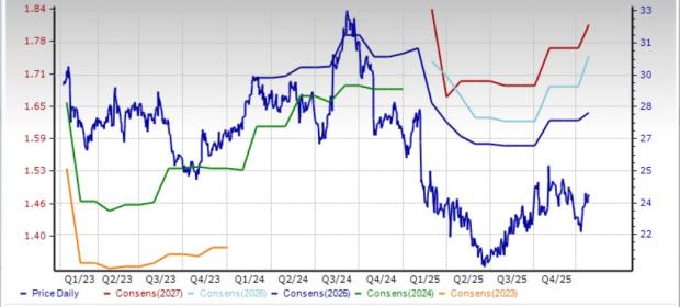 This leading provider of household essentials designed to simplify everyday life, offering trusted solutions for cooking, cleanup and food storage, delivered a trailing four-quarter earnings surprise of 2.6%, on average. The Zacks Consensus Estimate for Reynolds Consumer’s current financial-year sales suggests growth of 0.2% from the year-ago period. Shares of this Zacks Rank #2 (Buy) company have fallen 12.1% in the past year. You can see the complete list of today’s Zacks #1 Rank (Strong Buy) stocks here.