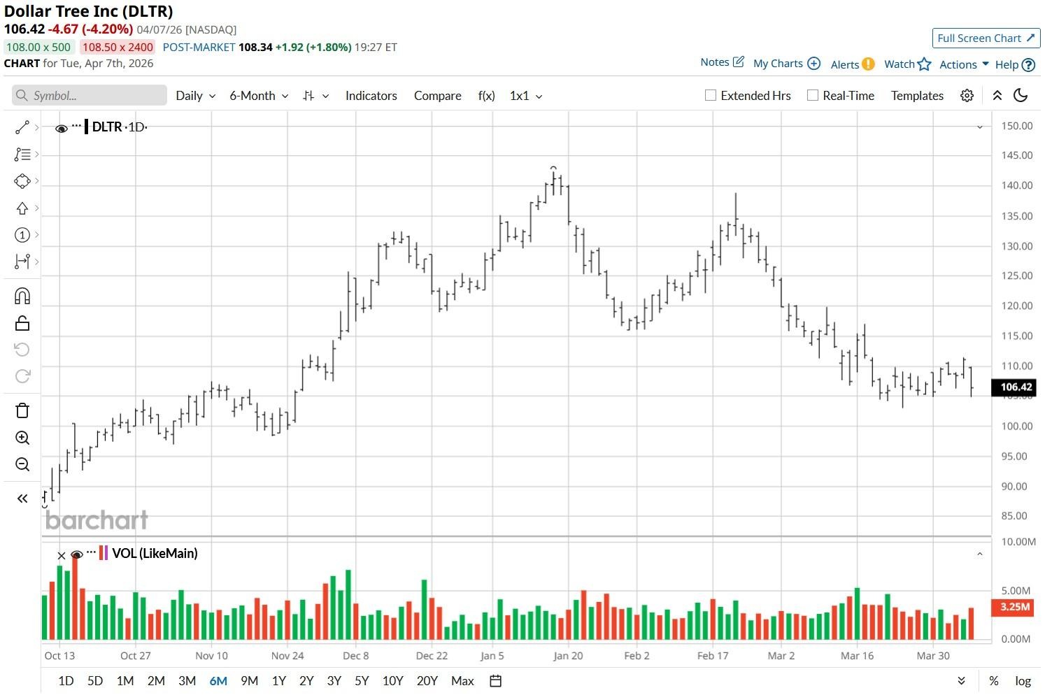 Dollar Tree (DLTR) slipped notably on April 7 as a confluence of macro headwinds prompted a broader selloff in consumer-oriented U.S. stocks.