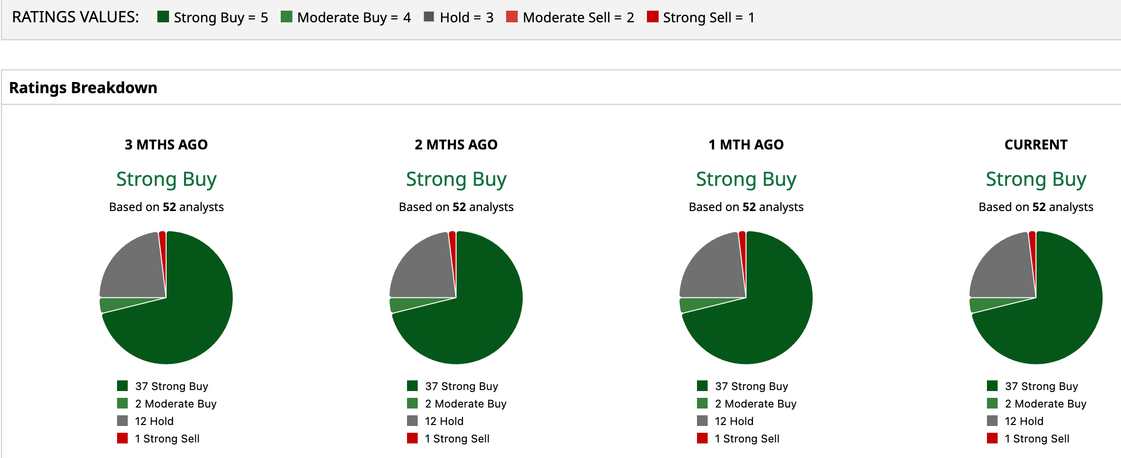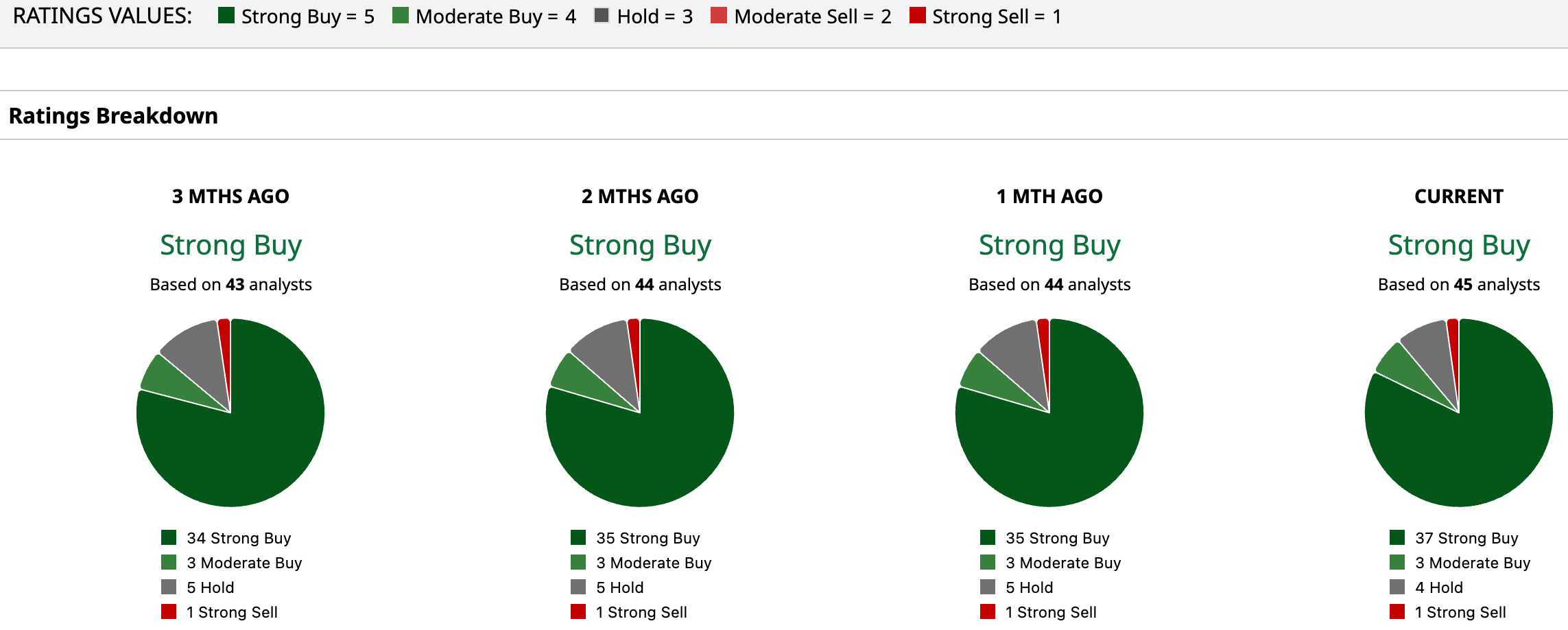 Overall, Wall Street’s optimism around ServiceNow remains strong, with the stock earning a “Strong Buy” consensus rating that reflects broad confidence in its long-term outlook. Of the 45 analysts covering the name, a dominant 37 rate it a “Strong Buy,” while three recommend “Moderate Buy.” Only four sit on the sidelines with “Hold,” and just one has issued a “Strong Sell,” underscoring how tilted sentiment remains toward the bullish side.