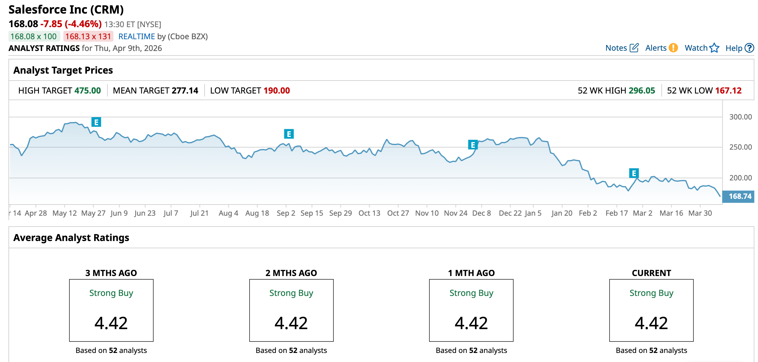The upside case is also notable, with an average price target of $277.14, implying a 64.9% gain, while the Street-high target of $475 suggests potential upside of up to 182.6% from current levels.