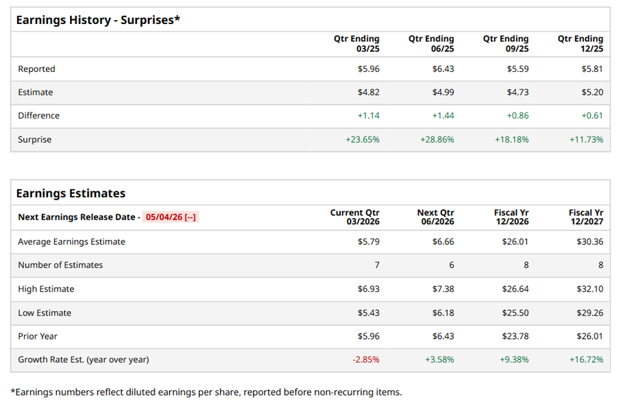 For the full year, analysts expect CMI to report EPS of $26.01, up 9.4% from $23.78 in fiscal 2025. Its EPS is expected to rise 16.7% year over year to $30.36 in fiscal 2027.