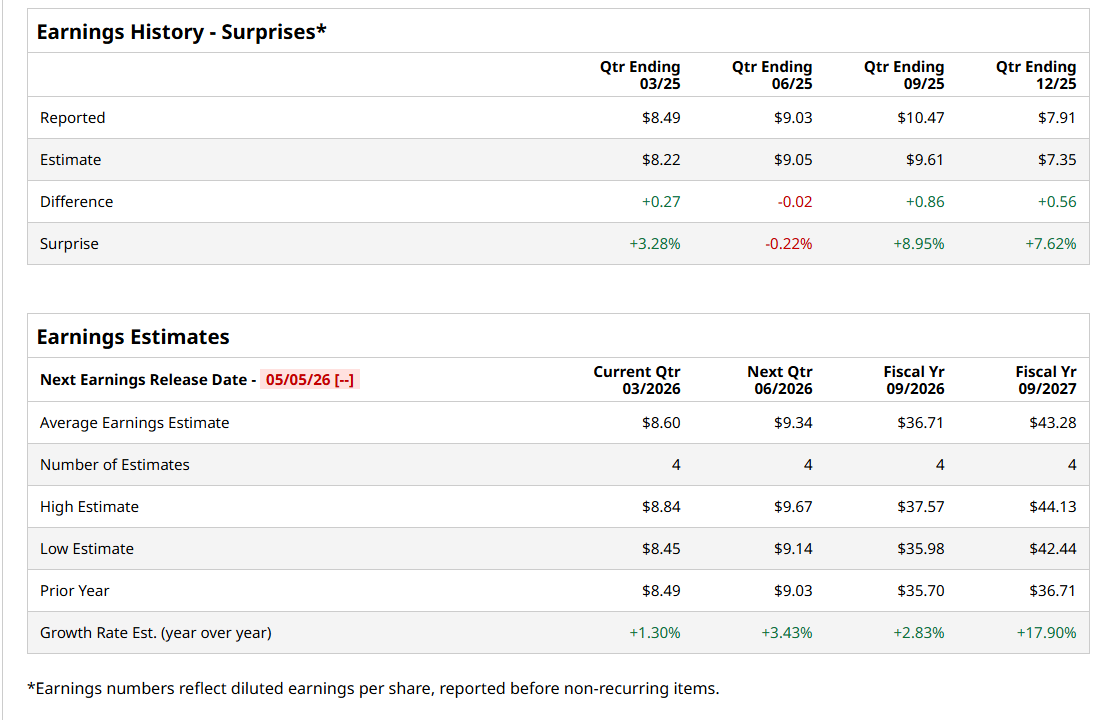 Cleveland, Ohio-based TransDigm Group Incorporated (TDG) designs and produces highly engineered aerospace components, primarily serving the commercial and military aircraft sectors. Valued at a market cap of $72 billion, the company is scheduled to announce its fiscal Q2 earnings for 2026 in the near future.