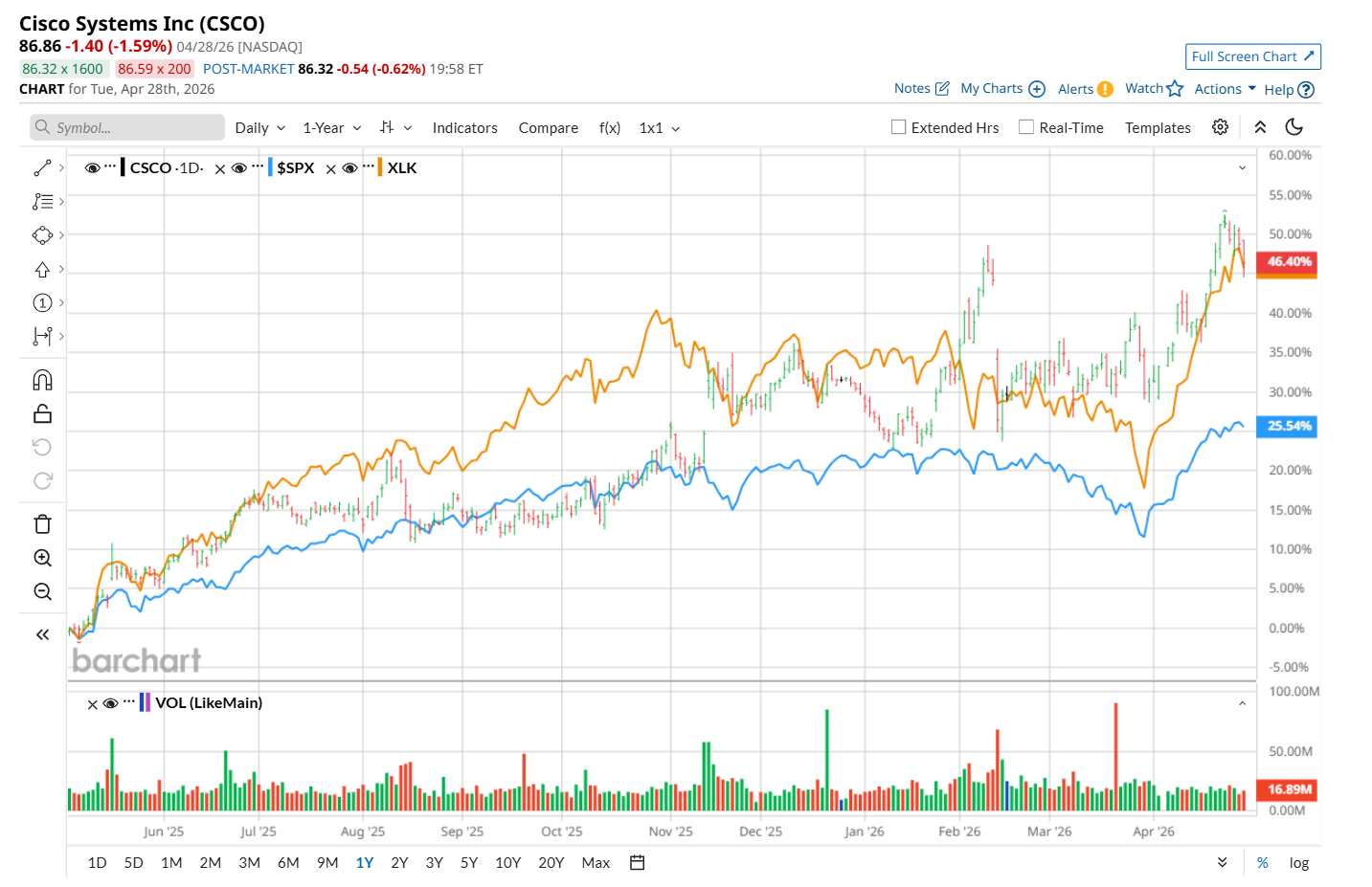 Zooming in further, this networking giant has also outpaced the Technology Select Sector SPDR ETF's (XLK51.7% return over the past 52 weeks and 9.6% uptick on a YTD basis.