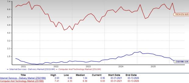 On the basis of forward 12-month price-to-sales (P/S), a commonly used multiple for valuing Internet-Delivery stocks, the industry is currently trading at 0.95X compared with the S&P 500’s 4.93X and the sector’s 7.1X.