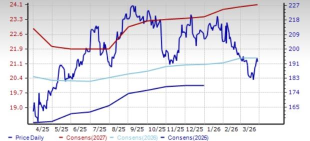 AutoNation currently carries a Zacks Rank #3. The Zacks Consensus Estimate for 2026 and 2027 sales implies year-over-year growth of 2% and 3%, respectively. The consensus mark for 2026 and 2027 EPS calls for a year-over-year uptick of 6% and 12%, respectively, from projected 2026 levels.