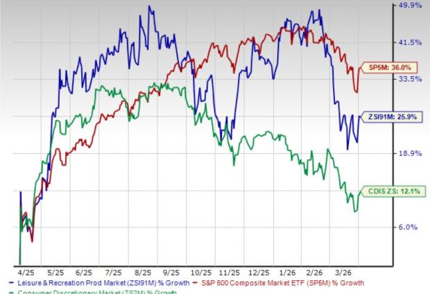 The Zacks Leisure and Recreation Products industry has underperformed the Zacks S&P 500 composite, but has outperformed its sector in the past year. Stocks in the industry have collectively gained 25.9% compared with the S&P 500’s rise of 36%. The Zacks Consumer Discretionary sector has rallied 12.1% in the same time frame.