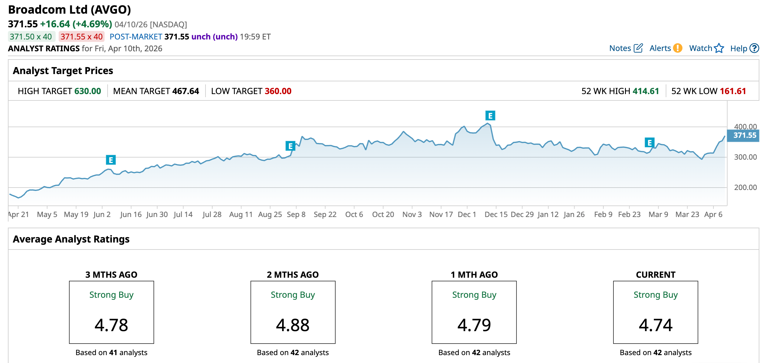 Broadcom stock has been on a powerful run, and investors have clearly rewarded its AI-led playbook. Over the past 52 weeks, AVGO has surged 115.64%, driven by strong AI networking demand, a successful VMware integration, and steady high-margin software earnings. Along the way, the stock notched 44 new highs, even touching a peak of $414.60 on Dec. 10, before cooling off and currently sitting about 10.38% below those levels.