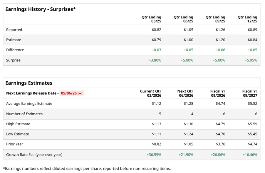 Johnson Controls International plc (JCI), headquartered in Cork, Ireland, engineers, manufactures, commissions, and retrofits building products and systems. With a market cap of $84.2 billion, the company offers air systems, building management, HVAC controls, security, and fire safety solutions. The engineering giant is expected to announce its fiscal second-quarter earnings for 2026 in the near term.