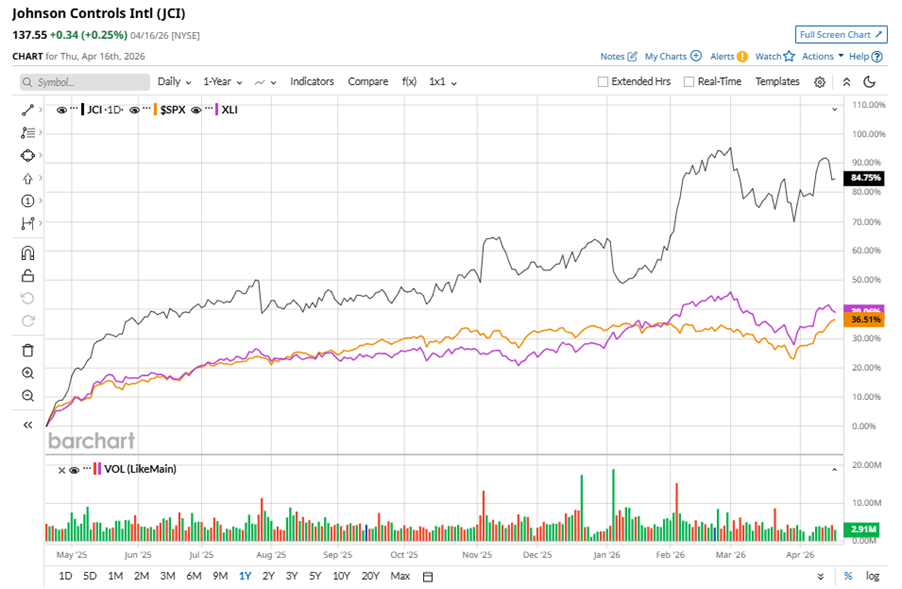 JCI stock has outperformed the S&P 500 Index’s ($SPX) 33.5% gains over the past 52 weeks, with shares up 79.4% during this period. Similarly, it outperformed the State Street Industrial Select Sector SPDR ETF’s (XLI) 36.7% gains over the same time frame.