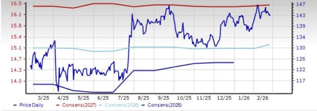 The Zacks Consensus Estimate for 2026 and 2027 earnings indicates a 4.1% and 8.9% year-over-year increase, respectively. The consensus estimate for 2026 and 2027 earnings has moved up 0.5% and 1.4%, respectively, in the past 30 days.