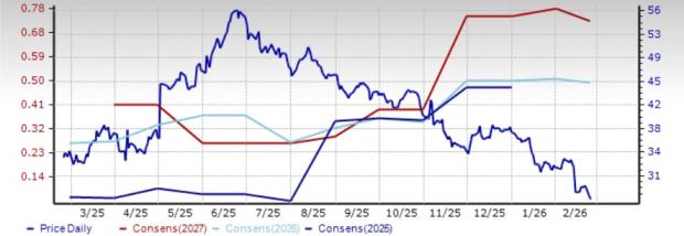 The consensus estimate for 2026 and 2027 earnings suggests a 107.5% and 19.4% increase, respectively, on a year-over-year basis. The consensus estimate for 2026 earnings has moved nearly 14% north in the past seven days.