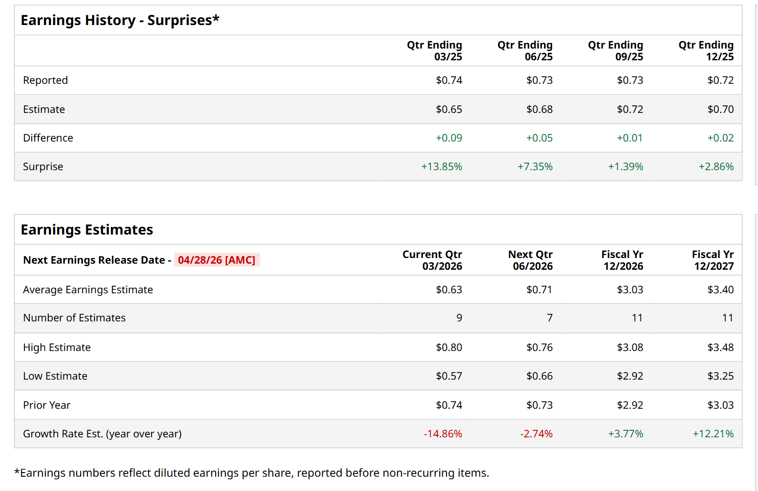 Chicago, Illinois-based Mondelez International, Inc. (MDLZ) manufactures, markets, and sells snack food and beverage products. Valued at a market cap of $75.6 billion, the company’s extensive portfolio includes iconic brands such as Oreo, Ritz, LU, CLIF Bar, Cadbury Dairy Milk, Milka, and Toblerone chocolate. It is scheduled to announce its fiscal Q1 earnings for 2026 after the market closes on Tuesday, Apr. 28.