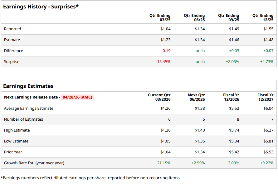 OKE is expected to release its Q1 2026 earnings on April 28, after the market closes. Ahead of the event, analysts expect the company’s EPS to be $1.26 on a diluted basis, up 21.2% from $1.04 in the year-ago quarter. The company has met or exceeded Wall Street’s EPS estimates in three of its last four quarters, while missing on one occasion.